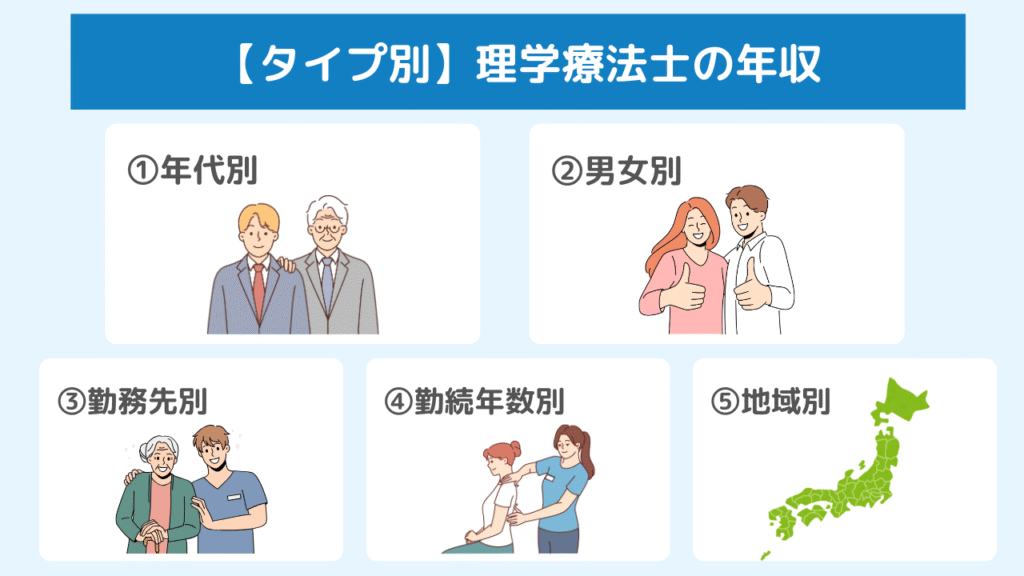 理学療法士の年収データを5タイプ別にわけて紹介していきます。