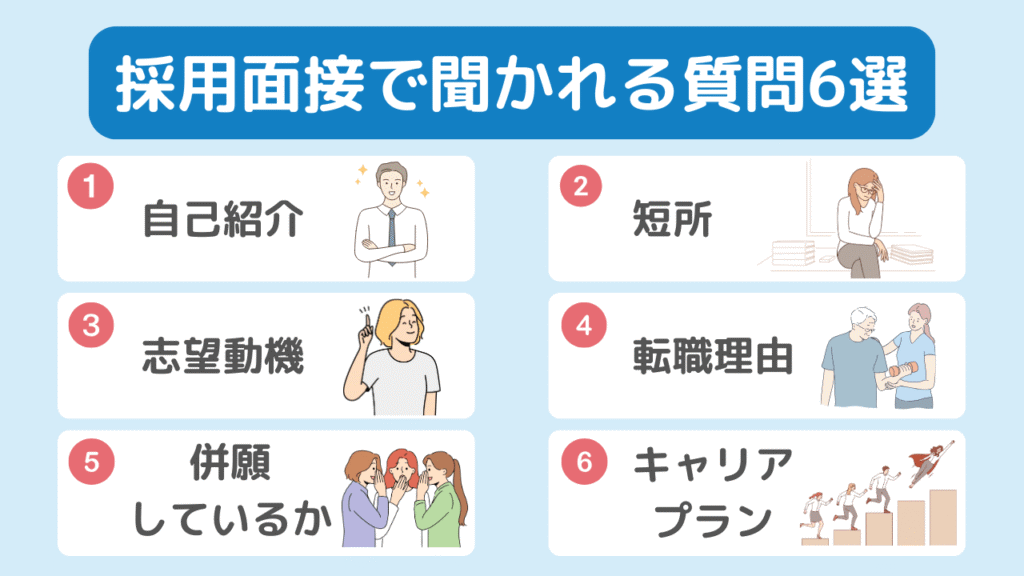 どの病院・施設の面接でも必ずと言っていいほど聞かれる、鉄板の質問6つを紹介します。