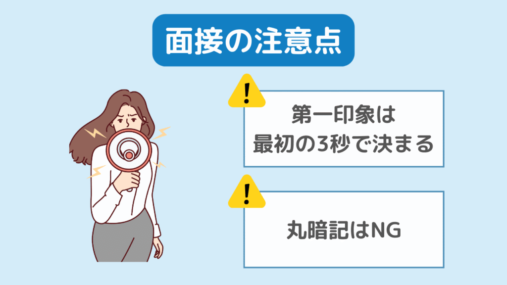 ここでは、複数の面接を受けた筆者の経験をもとに、面接を受ける上での注意点を2つ紹介します。