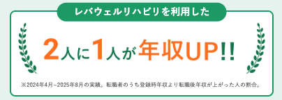 レバウェルリハビリを利用して転職した方のうち、2人に1人が年収アップを実現しています。