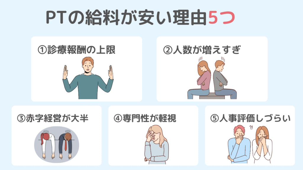 理学療法士の給料が安い理由は以下5つ。