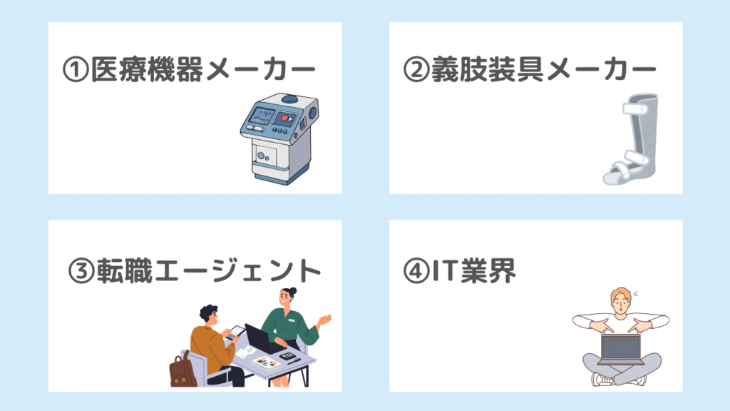 (※前述した医療機器メーカーや義肢・装具メーカーなど、PT経験が直接評価される業界は例外です。)
