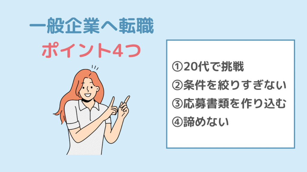 未経験で一般企業へ転職する際、最初から条件を絞りすぎるのはNGです。