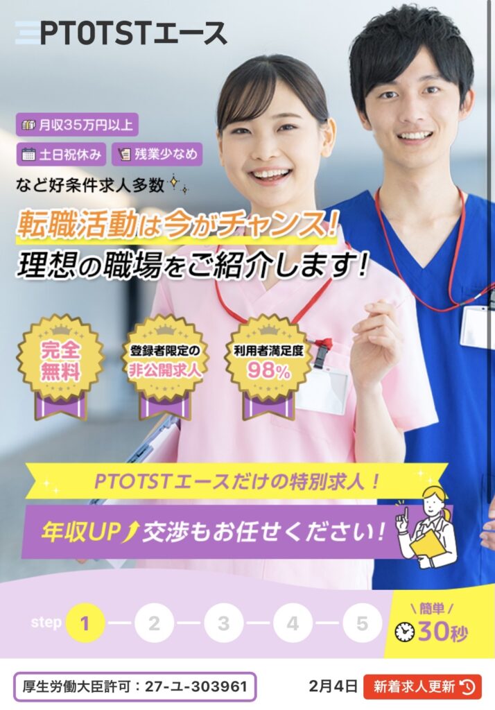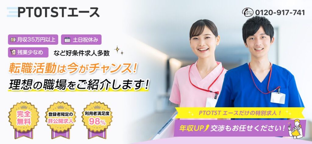 なかにはPTOTSTエースだけの特別求人もあり、ライバルが少ない状態で好条件を狙えるのは、本気で転職を考えている方にとって大きなメリットですよ。