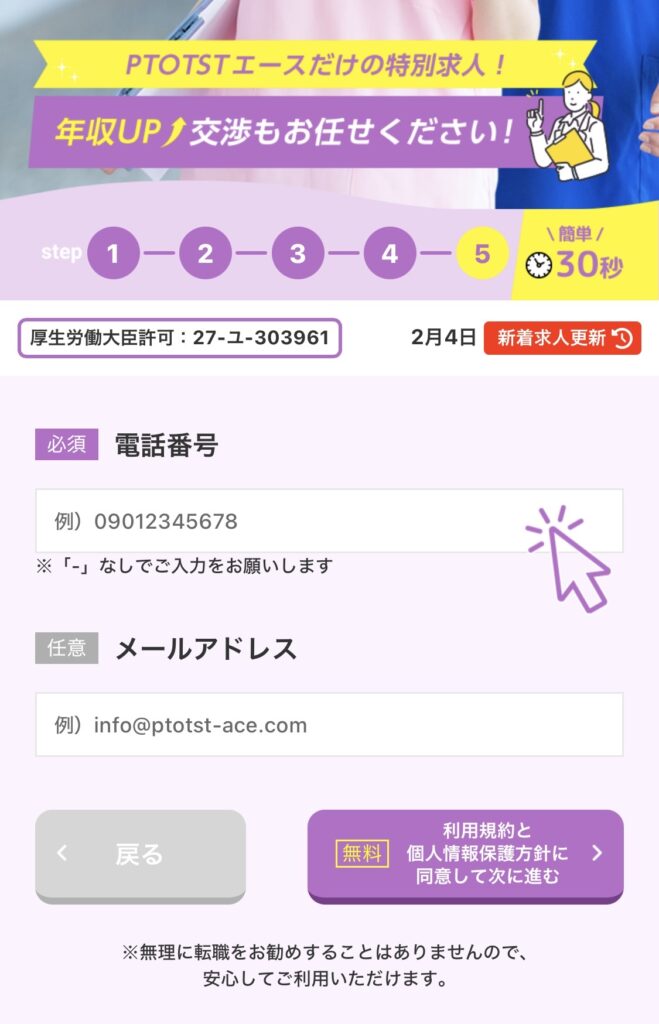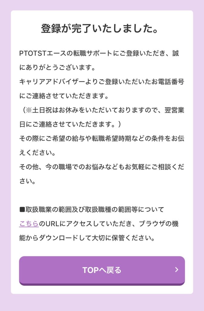 しかし、PTOTSTエースは違います。公式サイトにも「無理に転職をお勧めすることはありませんので、安心してご利用いただけます」というメッセージが繰り返し明記されています。